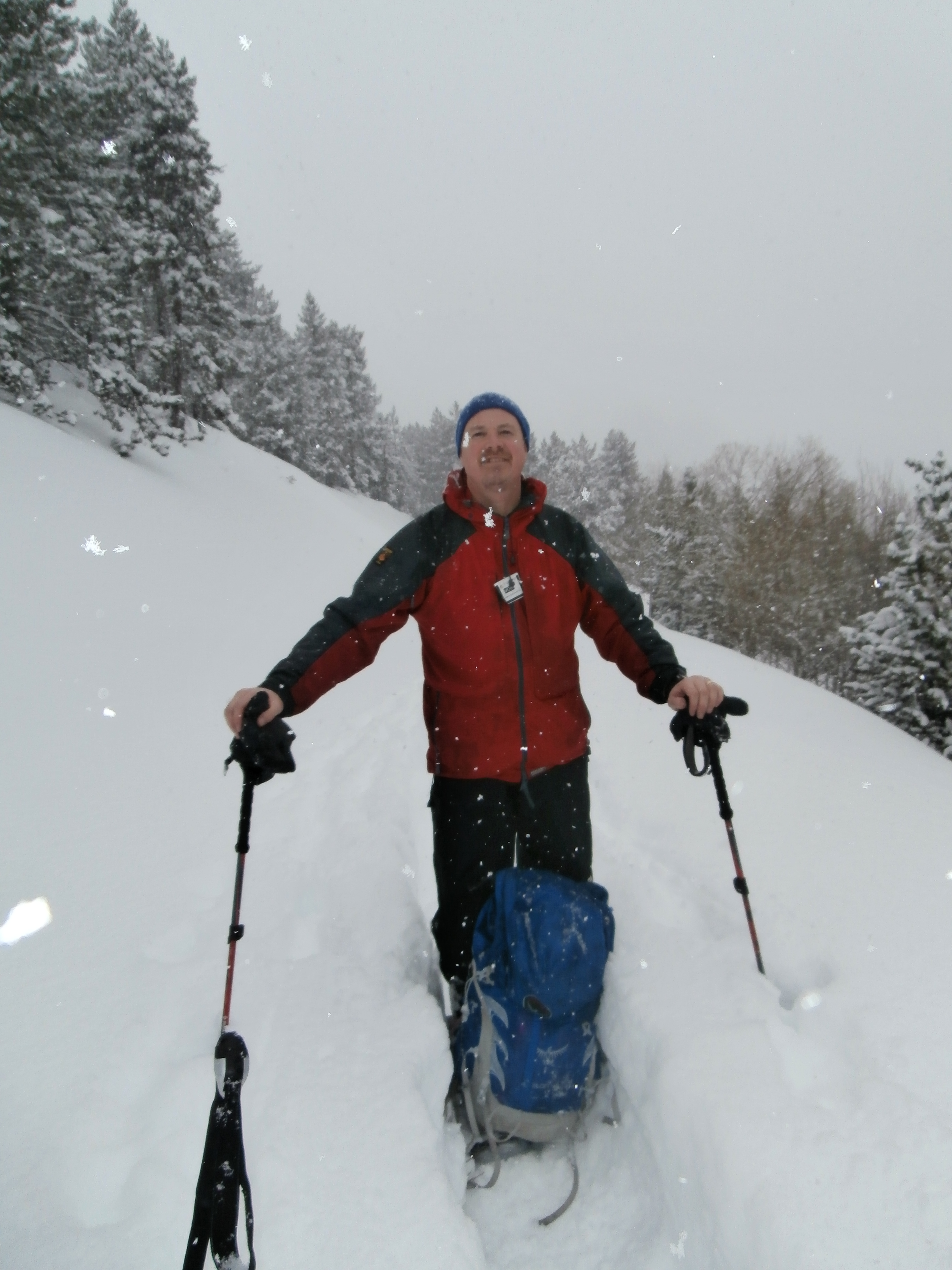 The steep skyline on the right caused us to move slowly later in the descent.