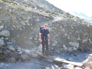 At 0800hrs, Saturday 15th August, 27 hours after starting, we had our picture taken on the Carel Hut balcony. The hut was almost empty and we had a quick four hours of poor sleep. I have to admit, my feet were bloody freezing and I couldn’t get them warm again! Just after midday, we began our descent, but this time straight in to Cervinia not to the cable car. At 1600hrs we dumped our sacks in the hire car and went straight off for a well earned and somewhat smelly beer!